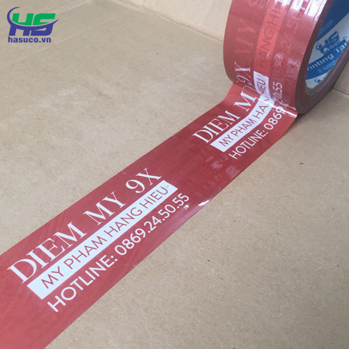CÔNG TY TNHH SX & TM HASUCO chuyên sản xuất và in ấn băng keo in logo, in chữ… cho các công ty, xí nghiệp với nhiều ngành nghề khác nhau như: thủy sản, thực phẩm, hàng tiêu dùng, hàng nội thất.., các nhãn hàng mỹ phẩm, spa, shop online… với nhiều màu sắc, quy cách và số lượng đa dạng theo từng nhu cầu của khách hàng.