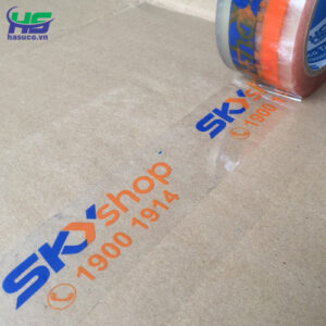 CÔNG TY TNHH SX & TM HASUCO chuyên sản xuất và in ấn băng keo in logo, in chữ… cho các công ty, xí nghiệp với nhiều ngành nghề khác nhau như: thủy sản, thực phẩm, hàng tiêu dùng, hàng nội thất.., các nhãn hàng mỹ phẩm, spa, shop online… với nhiều màu sắc, quy cách và số lượng đa dạng theo từng nhu cầu của khách hàng.