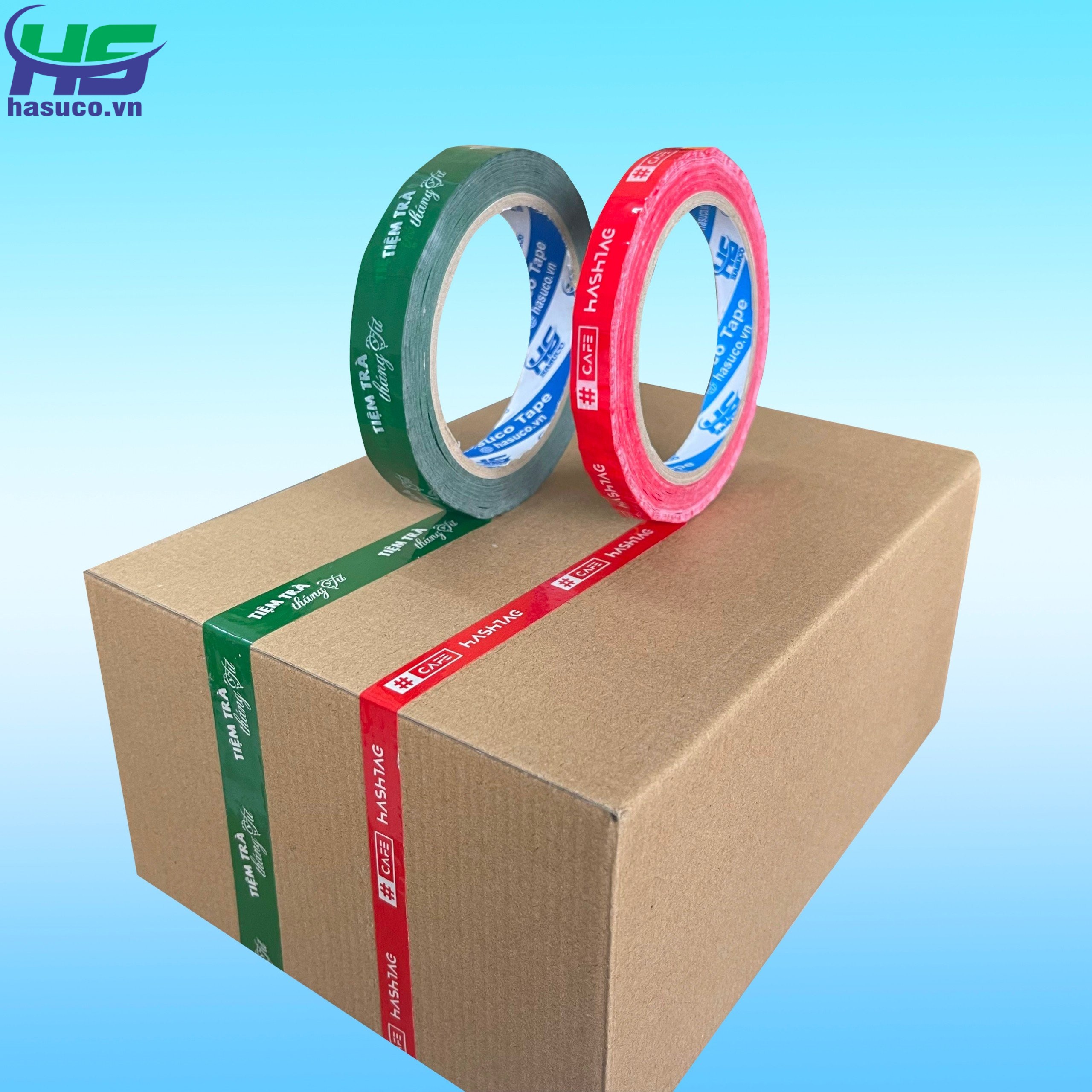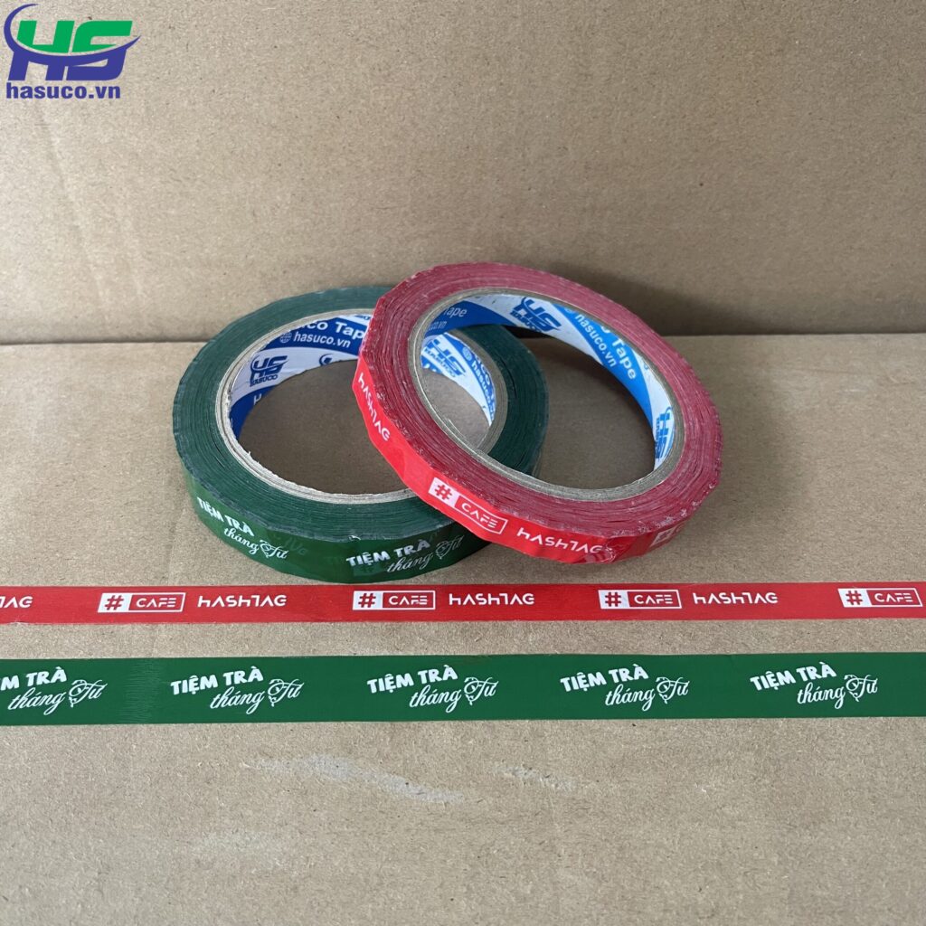 CÔNG TY TNHH SX & TM HASUCO chuyên sản xuất và in ấn băng keo in logo, in chữ… cho các công ty, xí nghiệp với nhiều ngành nghề khác nhau như: thủy sản, thực phẩm, hàng tiêu dùng, hàng nội thất.., các nhãn hàng mỹ phẩm, spa, shop online… với nhiều màu sắc, quy cách và số lượng đa dạng theo từng nhu cầu của khách hàng.