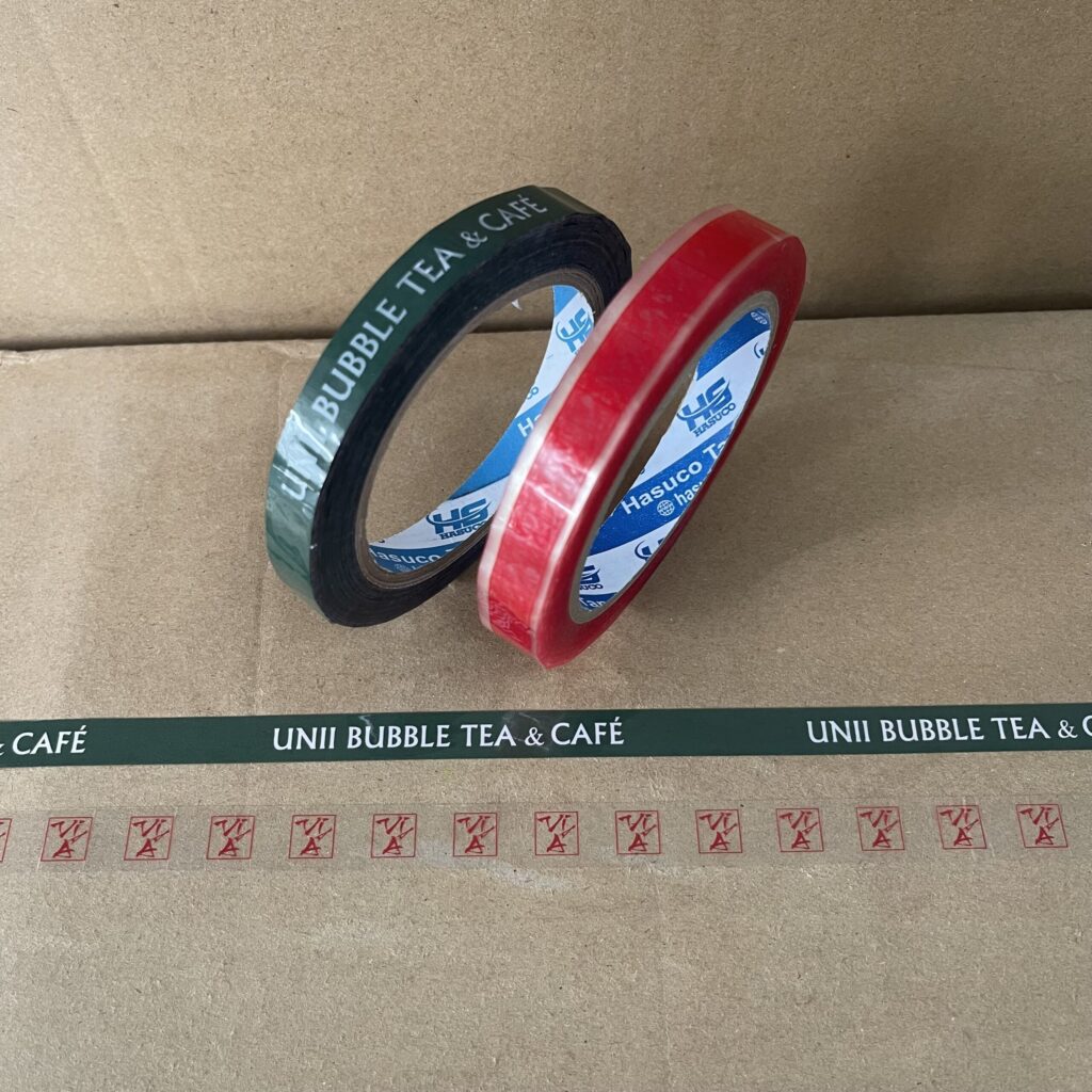 CÔNG TY TNHH SX & TM HASUCO chuyên sản xuất và in ấn băng keo in logo, in chữ… cho các công ty, xí nghiệp với nhiều ngành nghề khác nhau như: thủy sản, thực phẩm, hàng tiêu dùng, hàng nội thất.., các nhãn hàng mỹ phẩm, spa, shop online… với nhiều màu sắc, quy cách và số lượng đa dạng theo từng nhu cầu của khách hàng.