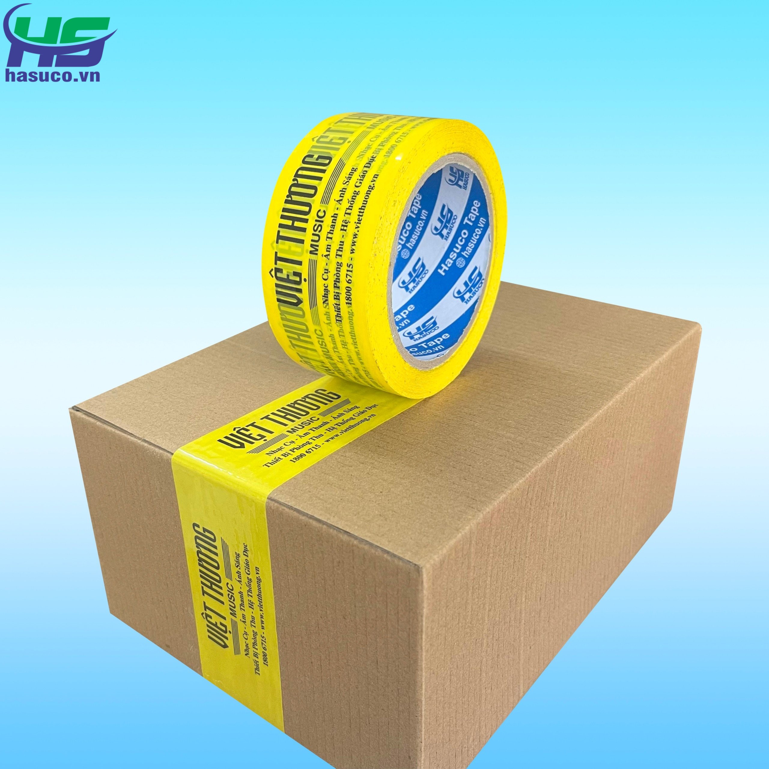 CÔNG TY TNHH SX & TM HASUCO chuyên sản xuất và in ấn băng keo in logo, in chữ… cho các công ty, xí nghiệp với nhiều ngành nghề khác nhau như: thủy sản, thực phẩm, hàng tiêu dùng, hàng nội thất.., các nhãn hàng mỹ phẩm, spa, shop online… với nhiều màu sắc, quy cách và số lượng đa dạng theo từng nhu cầu của khách hàng.